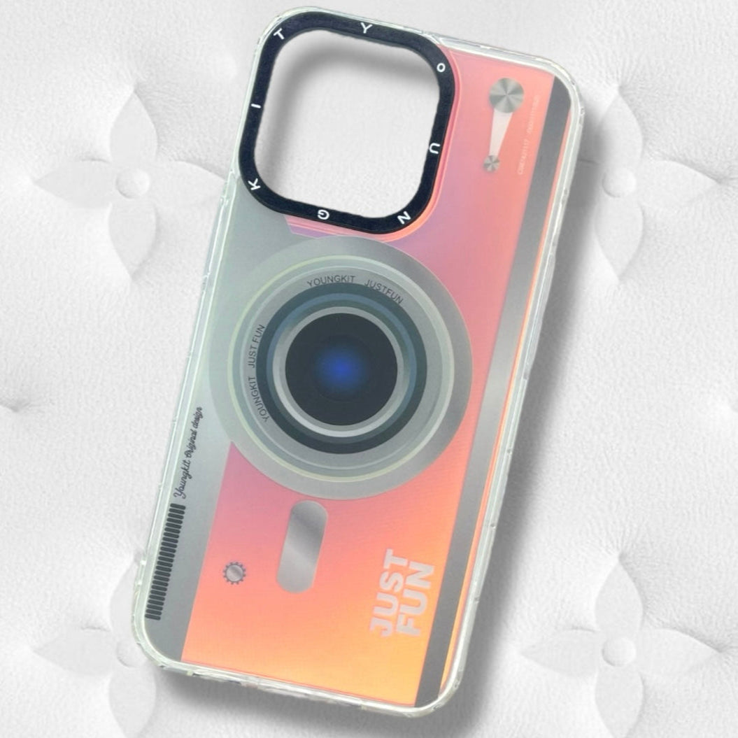 Enhance your iPhone 13 Pro with this stylish, retro-inspired camera case. Designed for both protection and flair, it combines vintage aesthetics with modern durability.